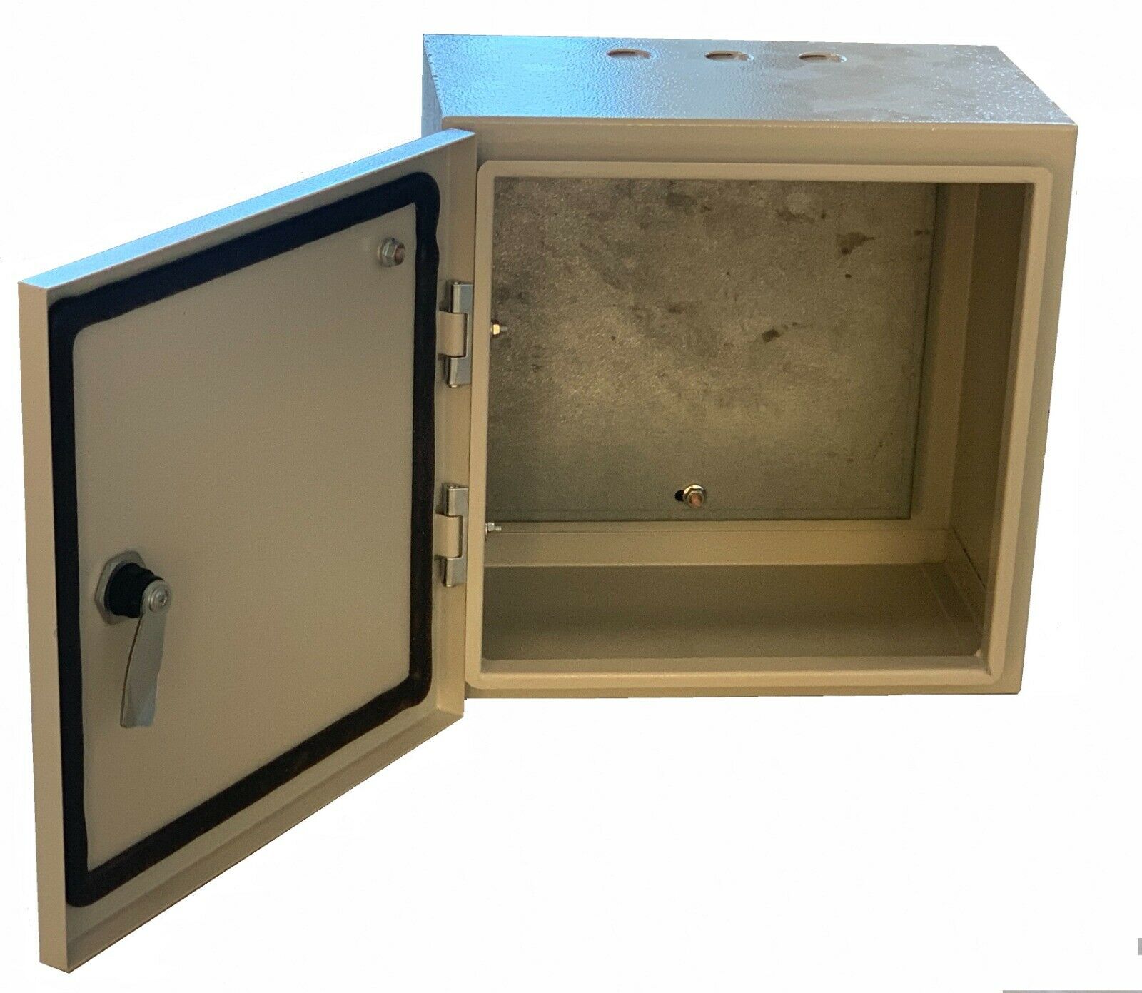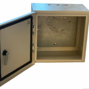 - Metal enclosure with lockable door and galvanised metal sheet inside